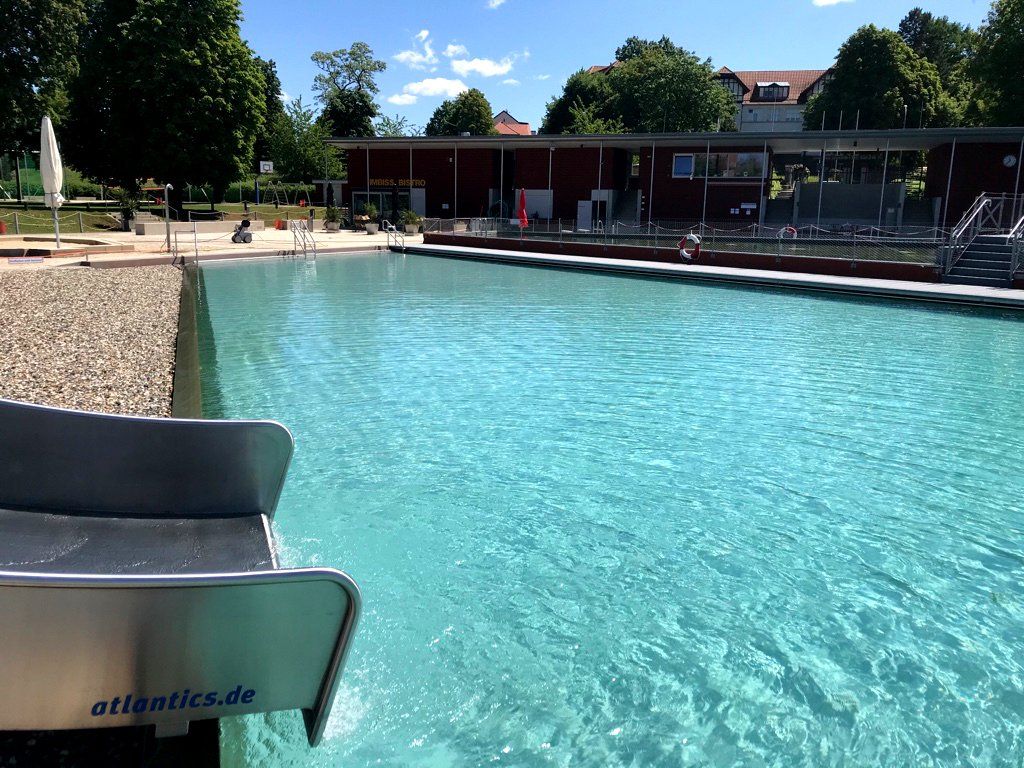 Das Naturerlebnisbad liegt inmitten der Stadt. Parkplätze sind direkt vorm Bad verfügbar.